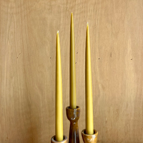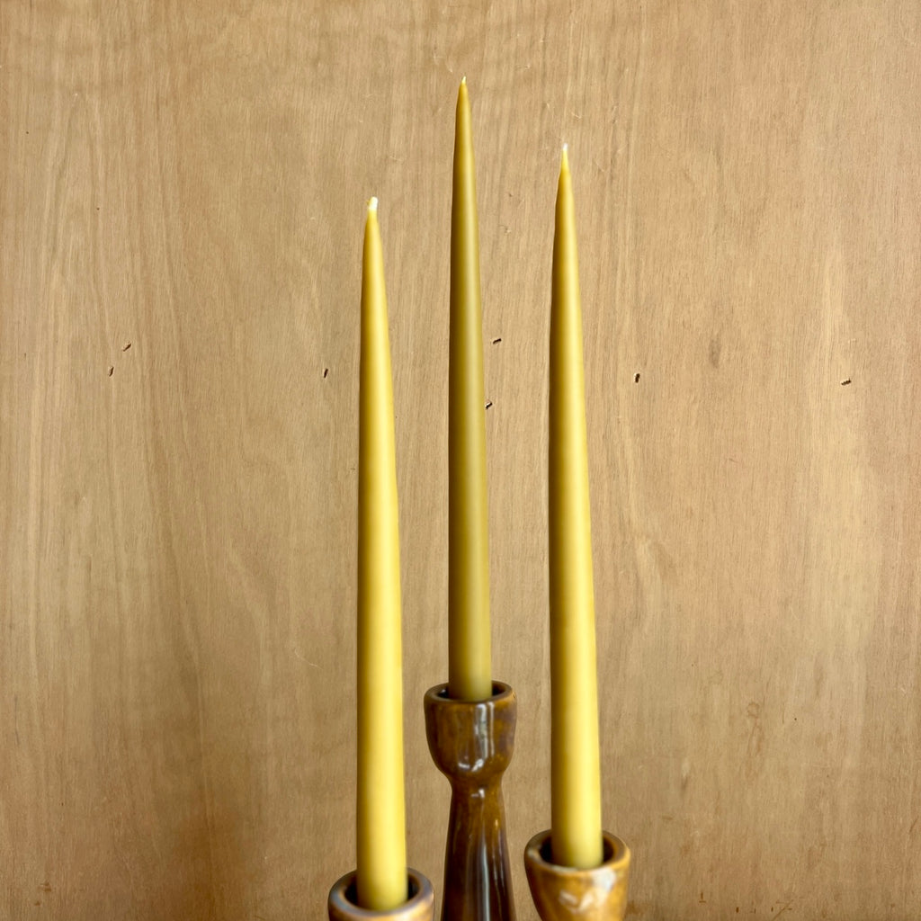 Sold as a set of 3 with 3 mustard hand-dipped taper candles.