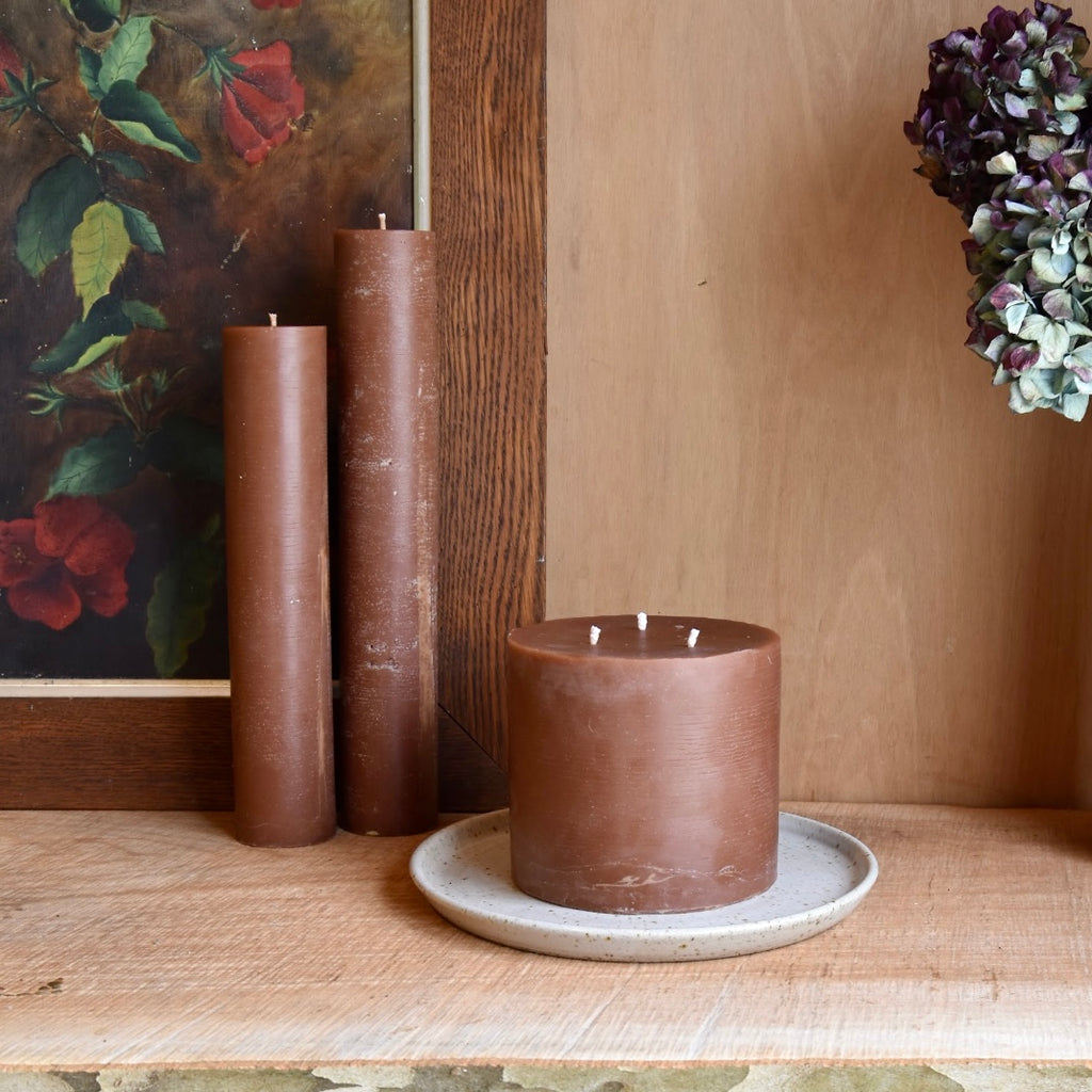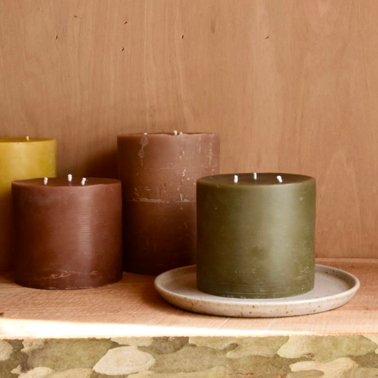 The popular Stump candle is a sizeable candle with 3 wicks to burn through the volume of beeswax.
