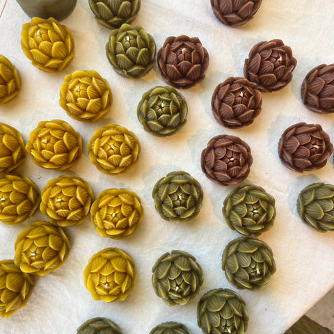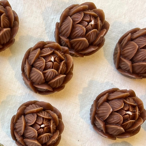 The very popular and ever so cute mini lotus candle is available in 3 colours-olive, natural & auburn.
